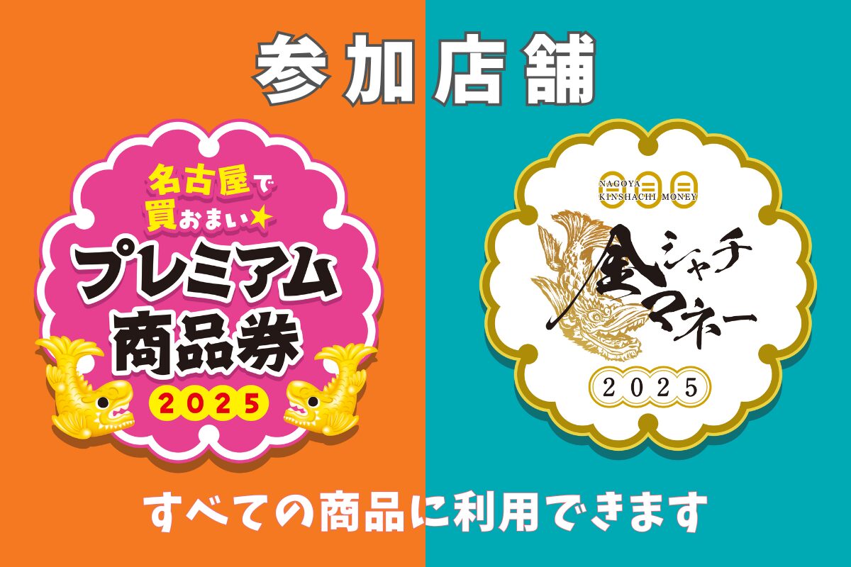 名古屋プレミアム商品券・金鯱マネーのご利用が可能です。